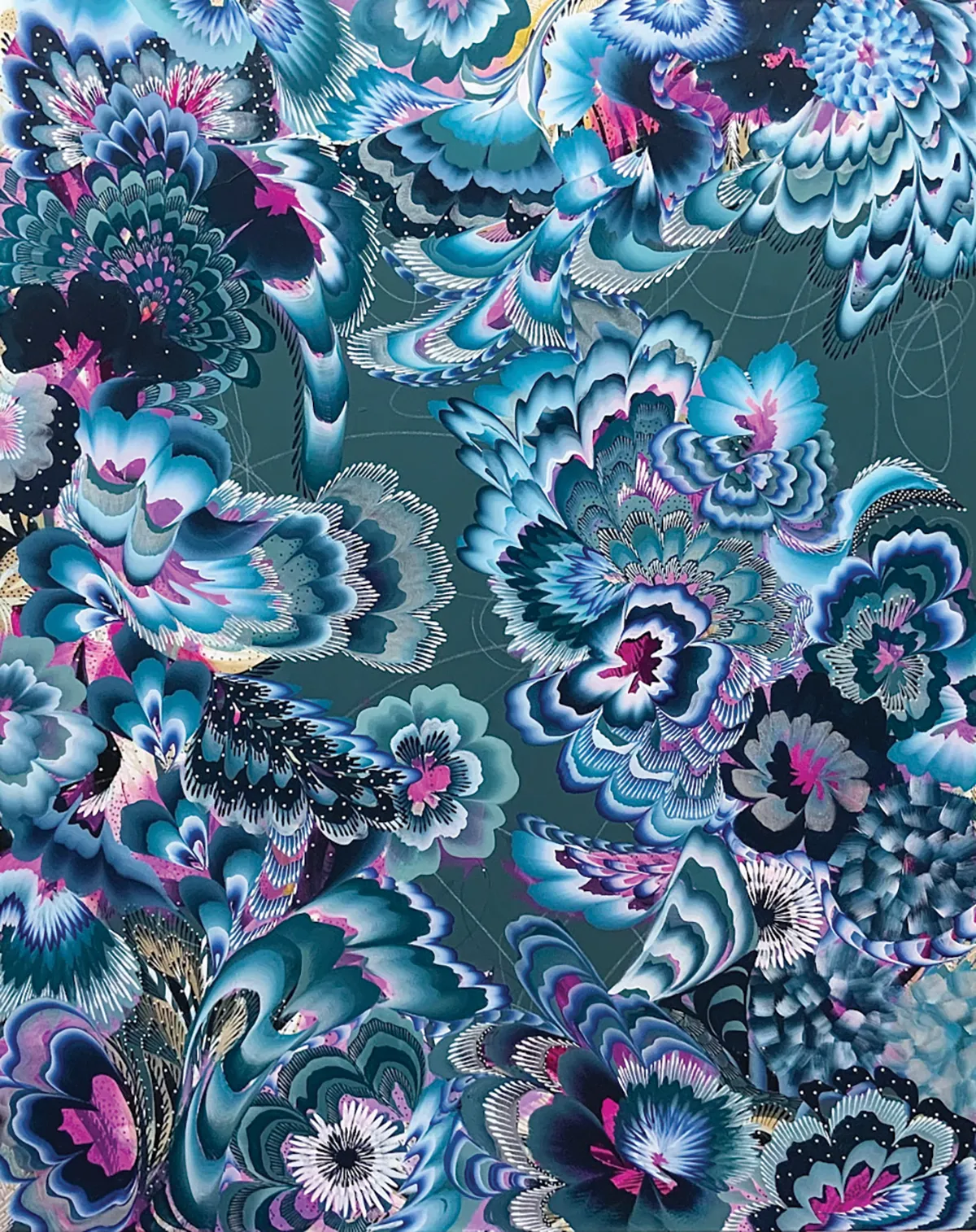 Sarah Dugger, “Gilded Roots Night”, 2025, acrylic, 60”x40”