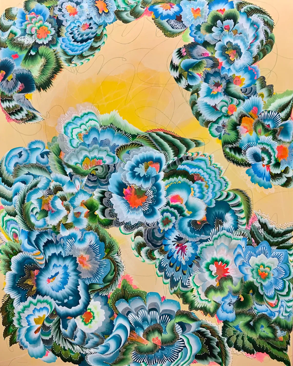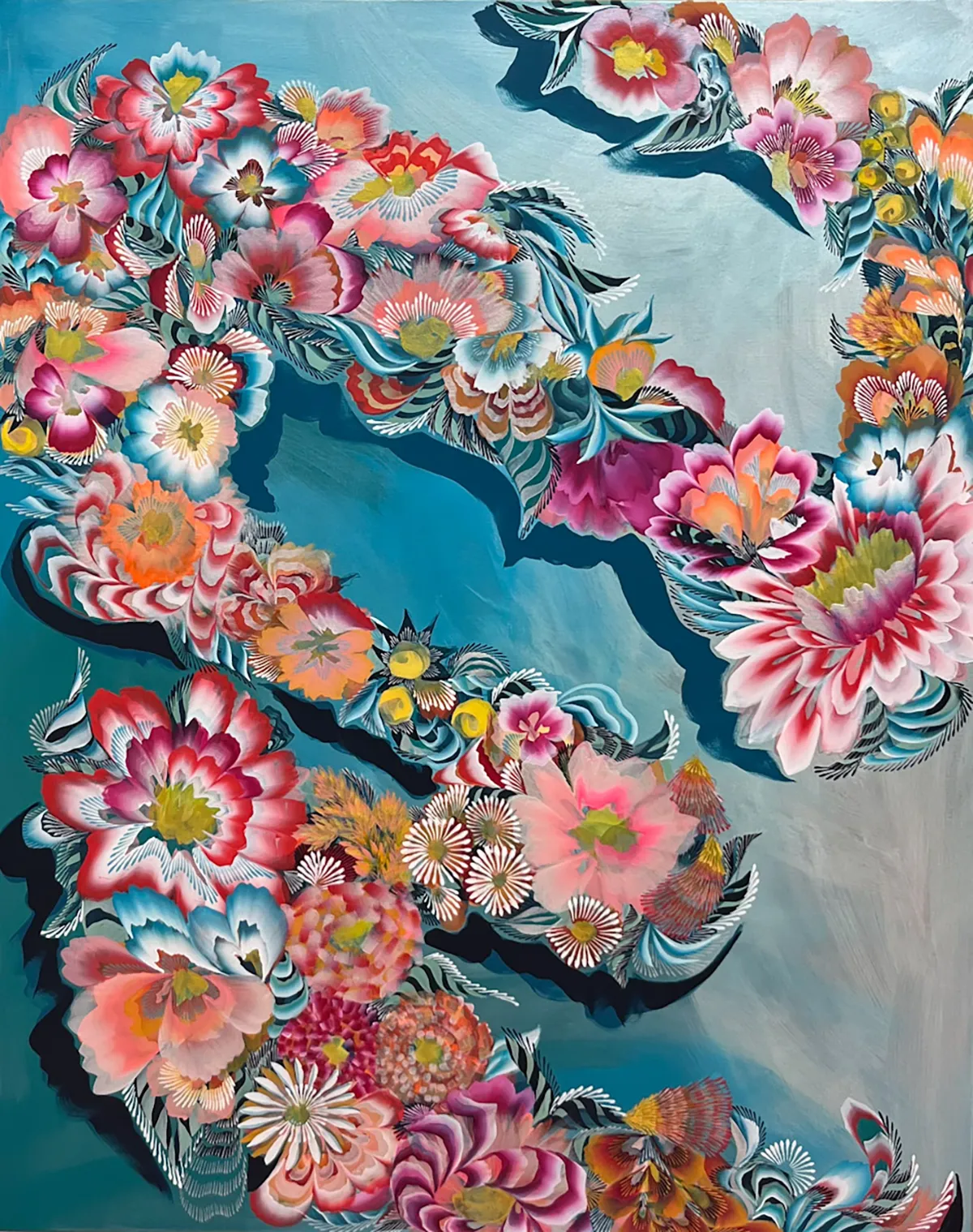 Sarah Dugger, “Gilded Roots Day”, 2025, acrylic, 60”x48”