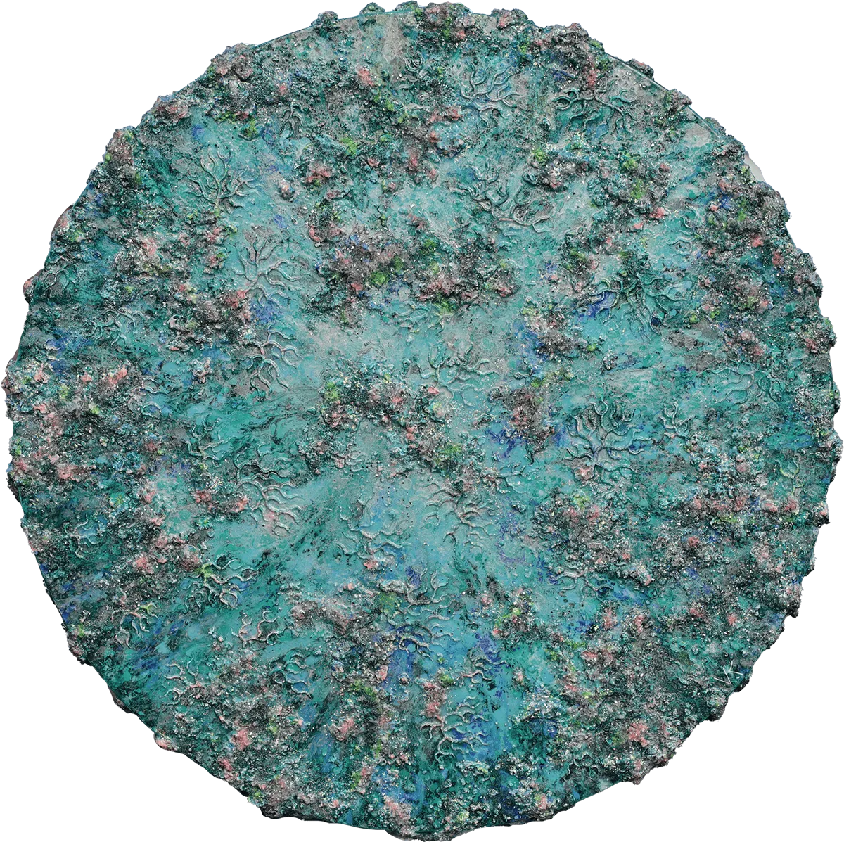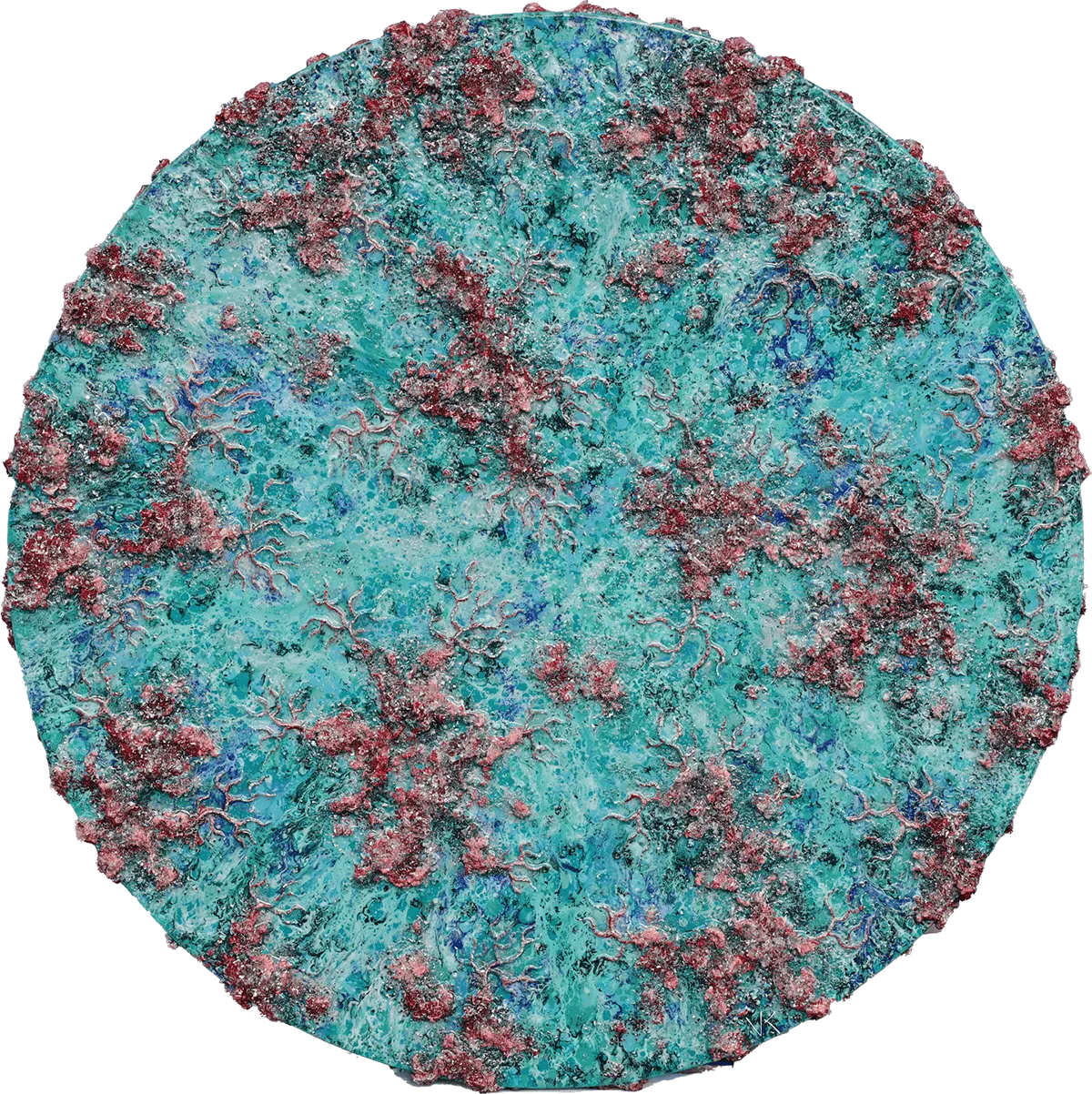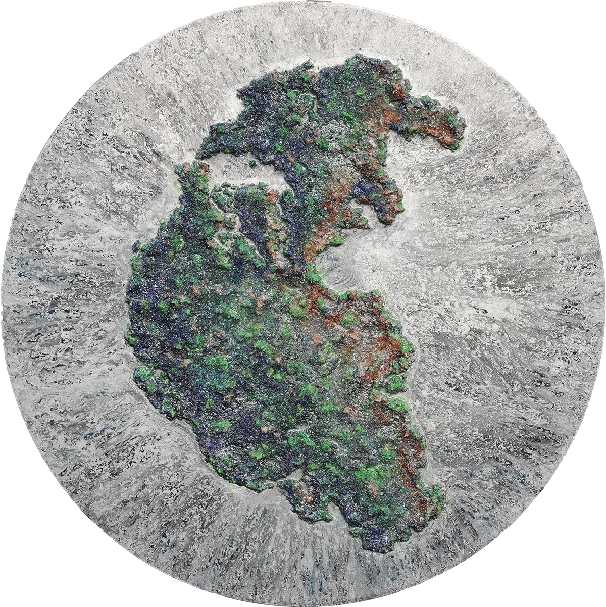 Victoria Kovalenchikova,Satellite View,2025,mixed media,oil on canvas,epoxy ,diameter 140 cm